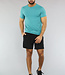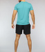 Dit trainingssetje is gemaakt van een elastische ademende stof en bestaat uit een shirt en een korte broek. De stof is namelijk voorzien van vele kleine gaatjes waardoor de top fijn luchtdoorlatend is en jouw lichaamstemperatuur ondersteunt tijdens het sporten. Het shirt heeft korte mouwen en een ronde halslijn. De korte broek heeft een elastische tailleband met vetersluiting.