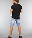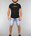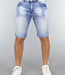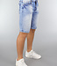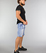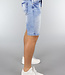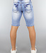 Deze korte broek is gemaakt van een denim stretch stof en hij is voorzien van een lichte wassing. De broek valt tot net boven de knie. Zowel aan de voor- als aan de achterkant zitten twee steekzakken. De tailleband heeft rondom zes lusjes waar eventueel een riem doorheen gehaald kan worden. De sluiting bestaat uit een rits en een knoop.