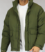 Oversized Groene Heren Winterjas met Hoge Kraag