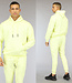 Trefwoorden: zachtgele stretch mannen hoodie, gele heren sweater met capuchon, lange mouwen, kangoeroezak, basic, veter, comfy, loose-fit
