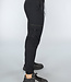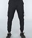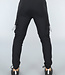 Deze toffe cargo broek is zwart van kleur en heeft een los model met weinig rek. Aan de voorkant zitten twee steekzakken en aan de zijkant zitten ook twee zakken met klepsluiting. De tailleband is elastisch en voorzien van een vetersluiting.