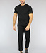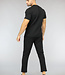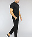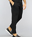 Deze joggingbroek bevat stretch en aan de voorkant zitten twee steekzakken. Hij heeft een elastische tailleband met vetersluitingen aan de achterkant zit nog één steekzak. De broek heeft aan de onderkant van de pijpen een elastisch boord waardoor die een beetje gaat poffen.
