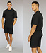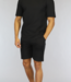 Trefwoorden: oversized zwarte mannen set, heren streetwear met korte mouwen, elastische tailleband, veterdetail, steekzakken, short, korte broek, loose-fit, basic, katoen