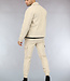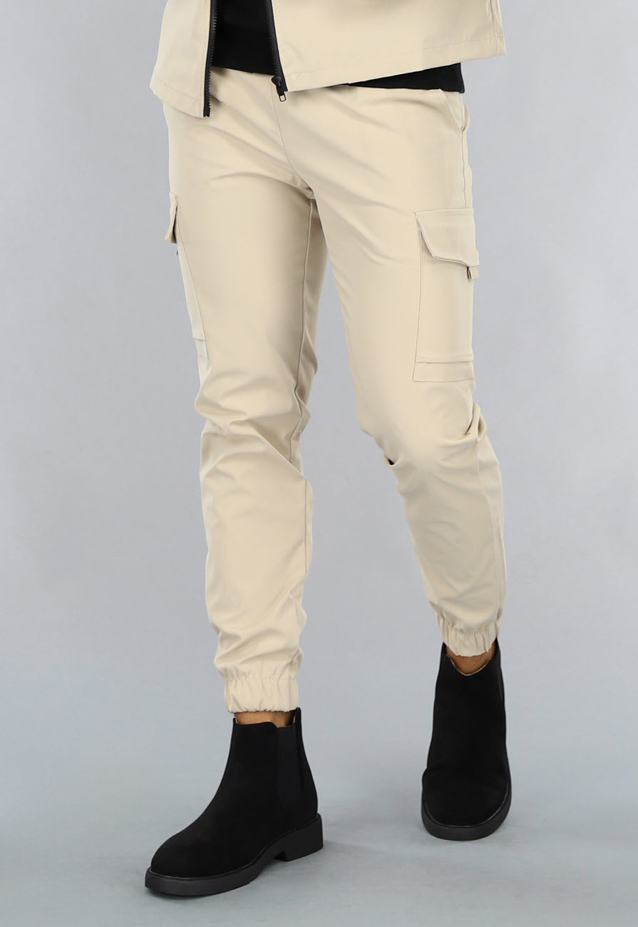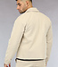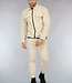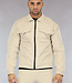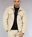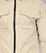 Deze beige heren jas is gemaakt van een parachute stof. De jas is voorzien van een zwarte grote ritssluiting. Het jasje heeft twee grote cargo klepzakken op de borst en een kraagje. Aan het einde van de lange mouwen zitten aansluitende boorden.