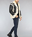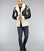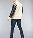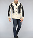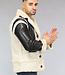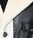 Deze jas is voorzien van een teddy kraag en de voor- en achterkant zijn voorzien meerdere lederlook details. Hij heeft een knoopsluiting welke voorzien is van vier knopen en aan de voorzijde zitten nog twee grote afsluitbare zakken. Deze zakken hebben beide een ritssluiting.
