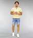 Deze polo is gemaakt van een wat dunnere stretch stof waardoor die heerlijk draagt tijdens de wat warmere dagen. Hij heeft korte mouwen en een kraagje. Over de borst lopen twee witte strepen. Deze polo heeft in de hals een ritssluiting.