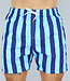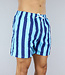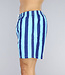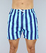 Deze leuke heren zwembroek is voorzien van een blauwe gestreepte print. De zwembroek heeft twee steekzakken aan de voorkant en één steekzak aan de achterkant. In de taille zit een elastische band en een veterdetail.