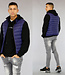 Trefwoorden: blauwe heren bodywarmer, gewatteerde mannen bodywarmer, mouwloze jas, sleeveless, zakken, blinde ritsen, ritssluiting, basic, streeppatroon