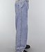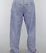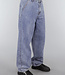 Deze broek is gemaakt van een blauwe denim stof. Hij heeft een oversized skater fit waardoor de broek een street style krijgt. Aan de voorzijde heeft hij twee steekzakken en aan de achterzijde zitten nog twee zakken. Daarnaast heeft de broek vijf lusjes waar je je eigen riem doorheen kan halen. De sluiting bestaat uit een knoopsluiting met daaronder een rits.