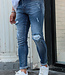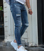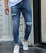 Deze lichtblauwe slim fit jeans voor heren is gemaakt van een comfortabele stretchdenim met een aansluitende pasvorm. De broek heeft opvallende gescheurde details op de dijen en knieën, wat zorgt voor een stoere en eigentijdse look. De jeans is afgewerkt met subtiele vervagingen, ton-sur-ton stiksels, vijf klassieke zakken en een metalen knoop- en ritssluiting. De elastische stof zorgt voor optimale bewegingsvrijheid zonder in te leveren op stijl. Perfect te combineren met sneakers voor een casual uitstraling.