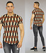 Trefwoorden: multicolor t-shirt met ruitpatroon, mannen shirt met korte mouwen, ronde halslijn, elastisch, asymmetrisch, print, omgeslagen mouwtjes, aansluitend, bruin, beige, zwart