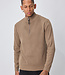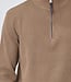 Deze camelkleurige half-zip herentrui is gemaakt van een fijn, verticaal ribgebreid breisel dat soepel en compact is. De hoge kraag sluit warm aan en is afgewerkt met een metalen korte ritssluiting met subtiele puller. De ribboorden aan de manchetten en zoom zorgen voor een nette en stevige pasvorm.