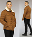 Trefwoorden: camel heren jack met teddy kraag, gewatteerde mannen jas, najaarsjas, stiksels, streeppatroon, ritssluiting, drukkers, zakken met klepsluiting, steekzakken
