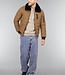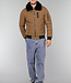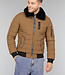 Deze gewatteerde mannen winterjas valt kort. Hij is voorzien van een kraag van imitatiebont. Aan de voorkant zitten twee grote zakken met klepsluiting en ritssluiting. Op de mouw zit tevens ook een zak met ritssluiting. De jas heeft een ritssluiting over de gehele lente. De mouwen hebben aan het uiteinde een elastisch boord. Tevens beschikt die nog over een binnenzak met ritssluiting.