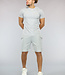 Deze mannen set bestaat uit een short en een shirt. De korte broek heeft een elastische tailleband met vetersluiting en twee steekzakken aan de voorzijde. Het shirt is aansluitend en voorzien van korte mouwen en een ronde halslijn. Beide items bevatten bevat veel stretch. Zowel de broek als het T-shirt zijn voorzien van een #icon opdruk.