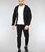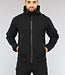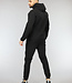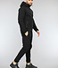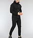 Dit tweedelige pak is gemaakt van een dikke stof en bestaat uit een broek en een vestje. De trui heeft een royale capuchon met aantrekkoord. Het vestje heeft twee steekzakken met ritssluiting. Hij heeft lange mouwen met aan het uiteinde een elastisch boord. De broek heeft een elastische taille met vetersluiting. Hij is aan de voorkant voorzien van twee steekzakken. De pijpen van de broek zijn ook voorzien van elastische boorden.