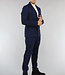 Deze tweedelige set bestaat uit een pantalon gecombineerd met een jasje in dezelfde stof. De set is gemaakt van een dikke, stevige stof. De jas heeft lange mouwen en een omgeslagen kraag. Ook heeft de jas een knoopsluiting bestaande uit twee zwarte knopen, deze knopen zitten ook per drie stuks op de mouwen. Om dingen op te bergen kan je gebruik maken van de grote binnenzak aan de binnenkant van de jas. De pantalon is ook voorzien van twee diepe steekzakken en twee zakken op de achterkant. De broek is makkelijk te sluiten door een combinatie van een knoop- en ritssluiting. Om de broek mooi te laten aansluiten bevat de broek een aantrekkoord en zes riemlusjes.
