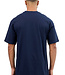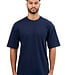 Dit T-shirt is uitgevoerd in een effen donkerblauwe kleur en gemaakt van katoen. Het model heeft een rechte, ruime pasvorm met korte mouwen en een ronde hals met een afgewerkte boord. De schoudernaden vallen iets lager en de zoom loopt recht af. Het shirt is glad uitgevoerd zonder prints, applicaties of sluitingen.