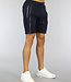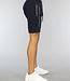 Trefwoorden: donkerblauw mannen short, heren korte broek met zakken, sporty, joggingbroek, jogger, comfy, rits details, veterdetail, zilveren rits, blauw short