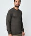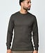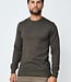 Deze trui is uitgevoerd in een effen donkergroene kleur en heeft een fijngebreide structuur. Het model heeft een ronde hals, lange mouwen en ribgebreide boorden aan de hals, mouwen en zoom. De pasvorm is recht en sluit licht aan op het lichaam. De trui is glad afgewerkt en bevat stretch.