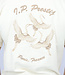 Dit T-shirt is gemaakt van een fijne katoenen stof. Het shirt heeft korte mouwen en een ronde hals. Het T-shirt is ecru van kleur en daarom een goede basic. De voorkant van het shirt heeft een geborduurde opdruk van een vogel.