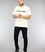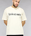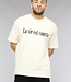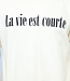 Dit T-shirt is gemaakt van een fijne katoenen stof. Het shirt heeft korte mouwen en een ronde hals. Het T-shirt is ecru van kleur. De voorkant van het shirt heeft hij tekst met "la vie est courte".