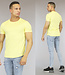Trefwoorden: geel heren t-shirt met streeppatroon, mannen shirt met korte mouwen, ronde halslijn, elastisch, reliëf