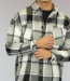 Dit item kan je als blouse of als overshirt dragen want hij is zowel open als dicht heel goed te combineren! De buitenzijde is gemaakt van een soort flanellen stof en hij heeft een grijs met zwart en wit blokpatroon. Dit overshirt beschikt over een kraagje en heeft lange mouwen met een knoopsluiting aan het einde waardoor je ze eventueel ook op kan rollen voor een stoerdere look. Tevens heeft die twee borstzakken. Aan de voorkant zit een knoopsluiting bestaande uit zeven knopen.