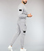 Dit huispak is gemaakt van een zachte stof waardoor die heel fijn draagt. Tevens is die effen van kleur waardoor je hem makkelijk kan combineren met één van onze sneakers of jackets! Dit huispak bestaat uit een broek en een sweater. De broek heeft een elastische tailleband met aantrekkoord en twee steekzakken, daarnaast bevat de broek ook twee grote klepzakken met drukknoopjes aan de zijkant. De sweater heeft lange mouwen en een ronde halslijn. Tevens zijn beide items voorzien van zwarte patches welke bevestigd zijn met twee knoopjes. Beide items bevatten stretch.