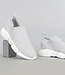 Trefwoorden: elastische grijze heren sneakers, mannen sock sneakers, witte zool, instappers, sok sneakers