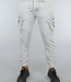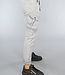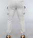 Deze toffe cargo broek is grijs en heeft een aansluitend model met rek waardoor hij comfortabel draagt. Aan de voorkant zitten twee steekzakken en aan de zijkant zitten ook twee zakken met klep- en druksluiting. De tailleband is elastisch en voorzien van een zwarte vetersluiting. Op de billen zitten ook nog twee steekzakken.