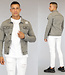 Trefwoorden: grijze heren spijkerjas, denim jack met scheuren, gaten, damaged, ripped, old look, vintage, spijkerstof, lange mouwen, longsleeve, knoopsluiting, stretch