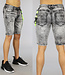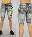 Grijze Washed Heren Jeans Short met Neon Details