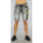 Deze korte broek is gemaakt van een light washed stretch jeans stof en hij heeft een gekreukte look. De broek valt tot net boven de knie. Zowel aan de voor- als aan de achterkant zitten twee steekzakken. De tailleband heeft rondom zes lusjes waar eventueel een riem doorheen gehaald kan worden. De sluiting bestaat uit een ritssluiting met daarboven een enkele knoopsluiting. Beide benen zijn voorzien van krassen en de jeans heeft neon groene details.