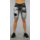 Deze korte broek is gemaakt van een light washed stretch jeans stof en hij heeft een gekreukte look. De broek valt tot net boven de knie. Zowel aan de voor- als aan de achterkant zitten twee steekzakken. De tailleband heeft rondom zes lusjes waar eventueel een riem doorheen gehaald kan worden. De sluiting bestaat uit een ritssluiting met daarboven een enkele knoopsluiting. Beide benen zijn voorzien van grote scheuren en krassen. Tevens staan er diverse teksten op de benen.