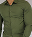 Trefwoorden: groen heren overhemd, slim fit mannen blouse, aansluitend, stretch, longsleeve, lange mouwen, basic, casual, kraagje, knoopsluiting, legergroen
