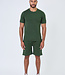 Deze donkergroene set bestaat uit een basic T-shirt en een short met elastische tailleband met twee steekzakken. De kleur is neutraal en makkelijk te combineren met witte sneakers. De stof is zacht en bevat stretch voor extra bewegingsvrijheid. Het T-shirt heeft een klassieke ronde hals en korte mouwen. Ideaal voor dagelijks gebruik, sportieve activiteiten of ontspanning in de zon.