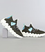 Deze sneakers vallen tot de enkel en zitten super comfortabel! Doordat de stof elastisch is kan je er gemakkelijk in- en uitstappen waardoor je een sok idee krijgt. Op de wreef zit een veter met grafisch patroon en tevens zitten er diverse details op de sneaker. De zool is grof geribbeld en bedekt met zwarte verfspatten.