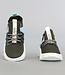 Trefwoorden: elastische groene heren sneakers, grove mannen sock sneakers, witte ribbel zool, instappers, sok sneakers, vetersluiting, verfspatten