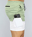 Deze short heeft een 2-in-1 werking. De short valt namelijk iets wijder uit, zodat het tijdens het sporten met elke beweging soepel mee gaat. Tevens zit en in het broekje en tight broekje verwerkt die de spieren op het bovenbeen warm houden. Dit geeft tijdens het sporten ook extra comfort. In de tight short zit een zakje waar de telefoon bewaard in kan worden. In het broekje zitten ook twee steekzakken met op de achterkant nog een kontzak met ritssluiting. In de taille zit een veter aantrekkoord zodat het broekje niet zal afzakken.