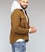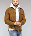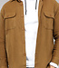 Dit overshirt is bruin van kleur en gemaakt van een dikke stof. De blouse heeft zes knopen welke dienen als sluiting. Ook heeft de blouse twee borstzakken welke ook zijn voorzien van twee knopen. Aan het uiteinde van de lange mouwen is een aansluitende boord aanwezig met een enkele knoopsluiting. De onderzijde van het overshirt loop rond.