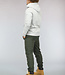Deze toffe cargo broek is khaki van kleur en heeft een los model met weinig rek. Aan de voorkant zitten twee steekzakken en op de voorkant zitten ook twee zakken met klepsluiting. De tailleband is elastisch en voorzien van een vetersluiting.