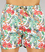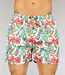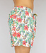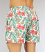 Trefwoorden: witte tropical heren zwembroek, korte mannen zwembroek met print, swimwear, zwembroek met steekzakken, badmode, elastische tailleband, vetersluiting, ananas, bladeren, bloemen