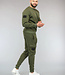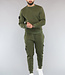 Dit huispak is gemaakt van een zachte stof waardoor die heel fijn draagt. Tevens is die effen van kleur waardoor je hem makkelijk kan combineren met één van onze sneakers of jackets! Dit huispak bestaat uit een broek en een sweater. De broek heeft een elastische tailleband met aantrekkoord en twee steekzakken, daarnaast bevat de broek ook twee grote klepzakken met drukknoopjes aan de zijkant. De sweater heeft lange mouwen en een ronde halslijn. Tevens zijn beide items voorzien van zwarte patches welke bevestigd zijn met twee knoopjes. Beide items bevatten stretch.