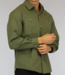 Trefwoorden: legergroene mannen blouse, heren oversized overhemd, longsleeve, lange mouwen, knopen, groen, borstzakjes, jasje