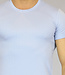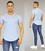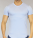 Trefwoorden: lichtblauw heren t-shirt met reliëf, mannen shirt met korte mouwen, ronde halslijn, elastisch, asymmetrisch, opdruk, print, omgeslagen mouwtjes