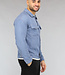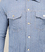 Deze denim blouse is voorzien van een ruwe afwerking wat een klein gaatjes patroon creëert. Het materiaal van de blouse is wat dikker en bevat stretch. Aan de voorzijde zit een druksluiting bestaande uit zes zilveren knopen. De blouse heeft lange mouwen en een kraagje, omdat de mouwen aan het uiteinde knopen hebben kan je ze eventueel ook oprollen. Op iedere borst zit nog een klein afsluitbaar zakje. Leuk om zowel open als dicht te dragen!