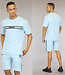 Trefwoorden: lichtblauwe stretch mannen set, blauwe oversized heren set met korte mouwen, elastische tailleband, veterdetail, steekzakken, short, korte broek, loose-fit, basic, short set, icon, print