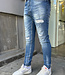 Deze lichtblauwe slim fit jeans voor heren is gemaakt van zacht stretchdenim met een gewassen effect dat zorgt voor een moderne, casual uitstraling. De broek heeft meerdere gescheurde details op de dijen en knieën, afgewerkt met lichte rafels voor een stoer karakter. De jeans beschikt over een vijfzakkenmodel, ton-sur-ton stiksels, een knoop- en ritssluiting en nauwsluitende pijpen. Dankzij de elastische stof blijft de broek comfortabel en behoudt hij zijn vorm. Ideaal te combineren met sneakers voor een sportieve streetstyle look.