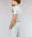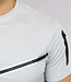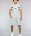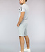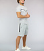Deze mannen set bestaat uit een short en een shirt. De korte broek heeft een elastische tailleband met vetersluiting en twee steekzakken aan de voorzijde. Het shirt is aansluitend en voorzien van korte mouwen en een ronde halslijn. Beide items bevatten bevat veel stretch. Het shirt is voorzien van een V detail op de borst.